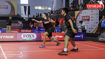 Reinard Dhanriano+Rayhan Vania Salsabila (Mutiara Cardinal, Bandung) bersiap menahan serangan