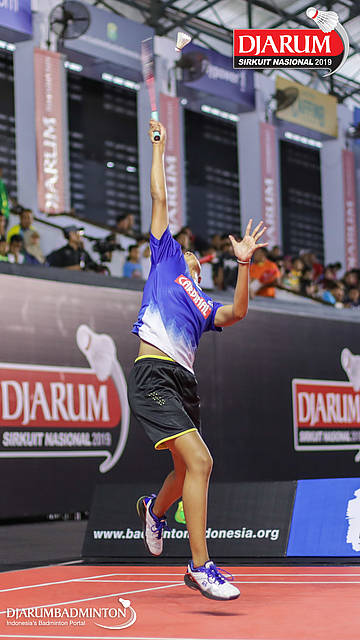 Saifi Rizka Nurhidayah (Mutiara Cardinal, Bandung) menyambut shuttlecock