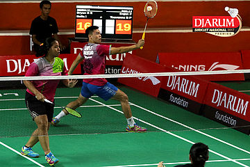 Bryan Sydney/Bella Irianti (Tangkas Intiland) Mengembalikan Shuttlecock