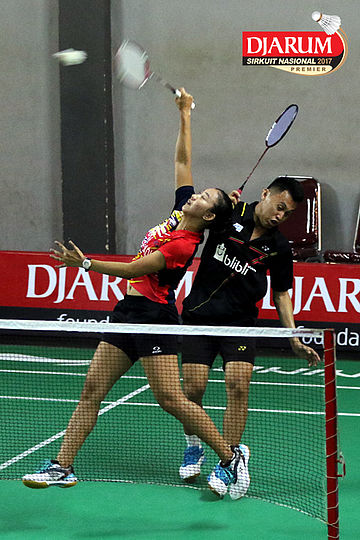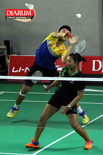 Zachariah Johsiano/Endang Nursugianti (Tangkas Intiland) Mengembalikan Shuttlecock