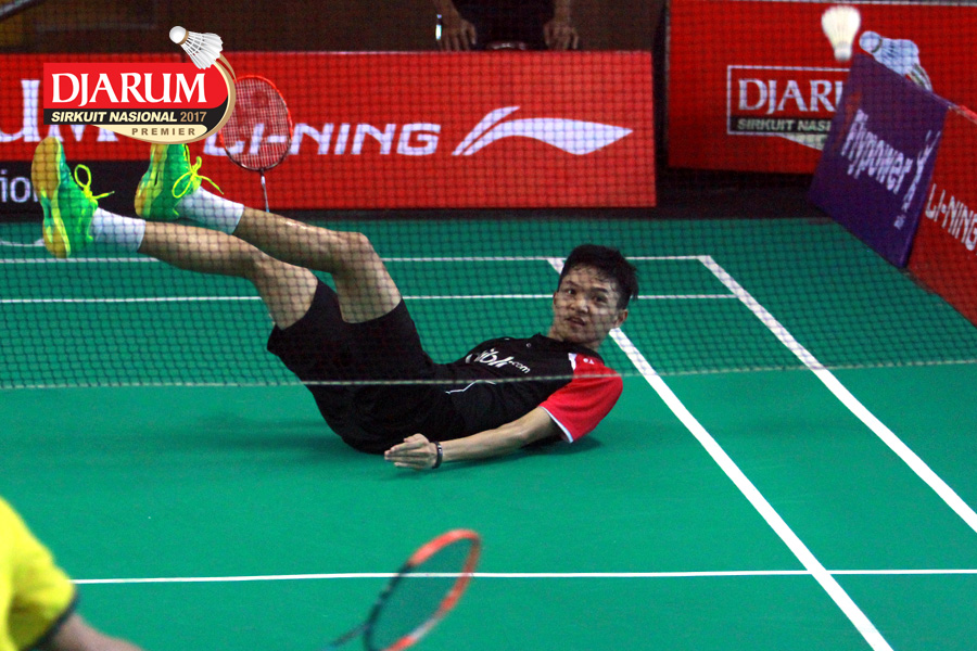 Bobby Setiabudi (Djarum Kudus) Terjatuh Saat Menghadang Serangan