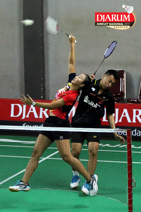 Tedi Supriadi/Devi Tika (Djarum Kudus/Berkat Abadi) Mengembalikan Shuttlecock