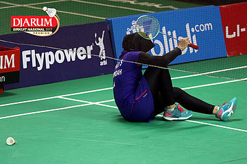 Aldira Rizki/Fauzia Kartikasari (Djarum Kudus) Mengembalikan Shuttlecock