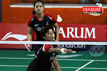 Aldira Rizki/Fauzia Kartikasari (Djarum Kudus) Menghadang Serangan