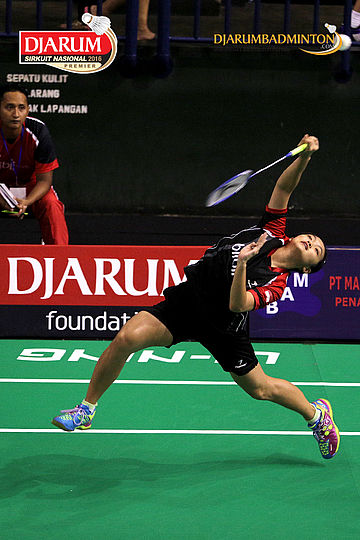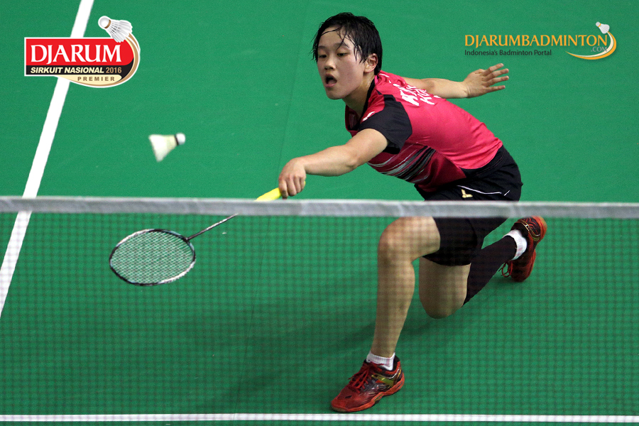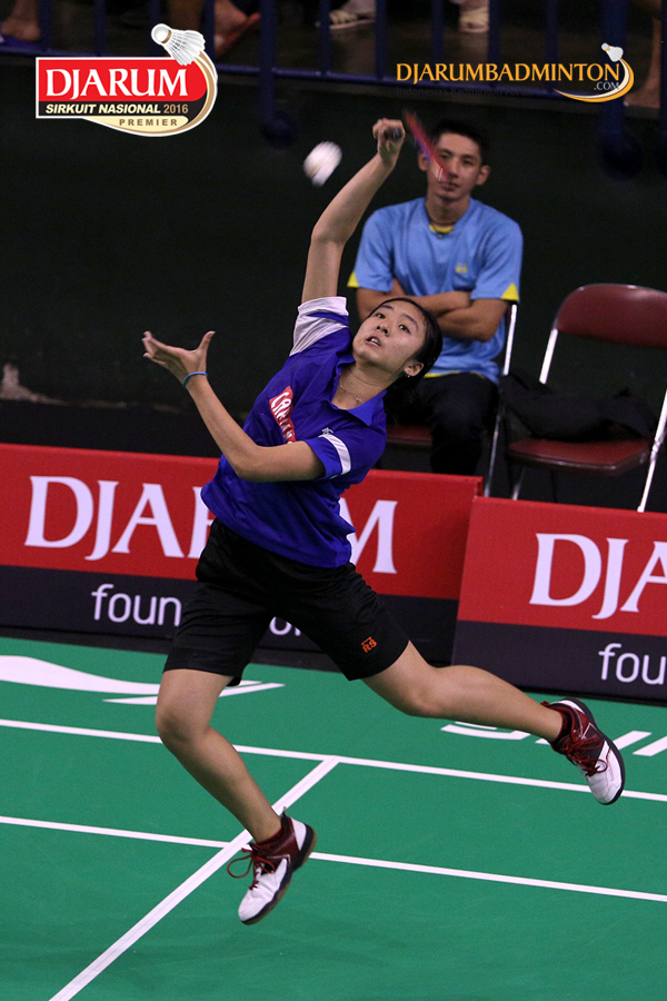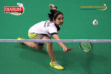 Savira Sandradewi (Djarum Kudus) melepaskan serangan