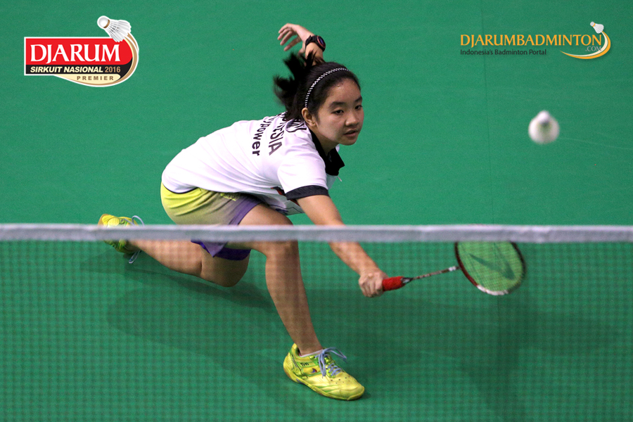 Aldira Rizki (Djarum Kudus) mengembalikan shuttlecock