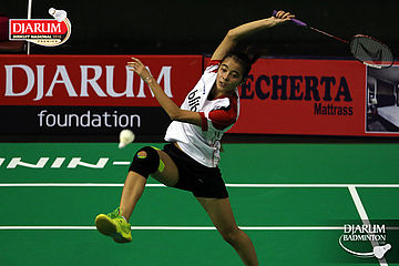 Silvi Wulandari (Djarum Kudus) melepaskan serangan