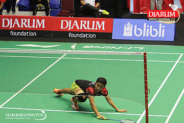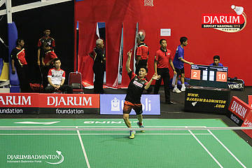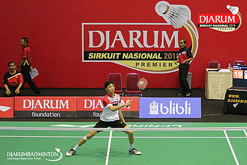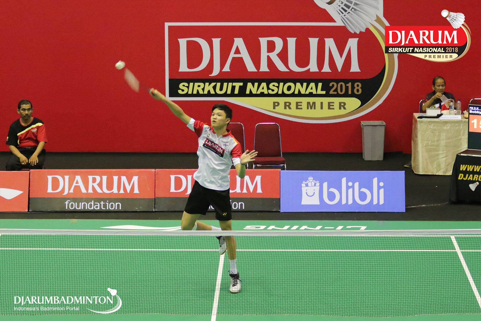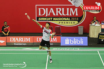 Herdian Muhammad Labib (PB Djarum, Kudus) bersiap menyambar pengembalian
