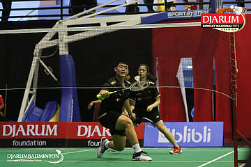 Michael Kaldrian Wiguna dan Nathalie Ivyana (Daihatsu Candra Wijaya) bersiap melakukan pengembalian