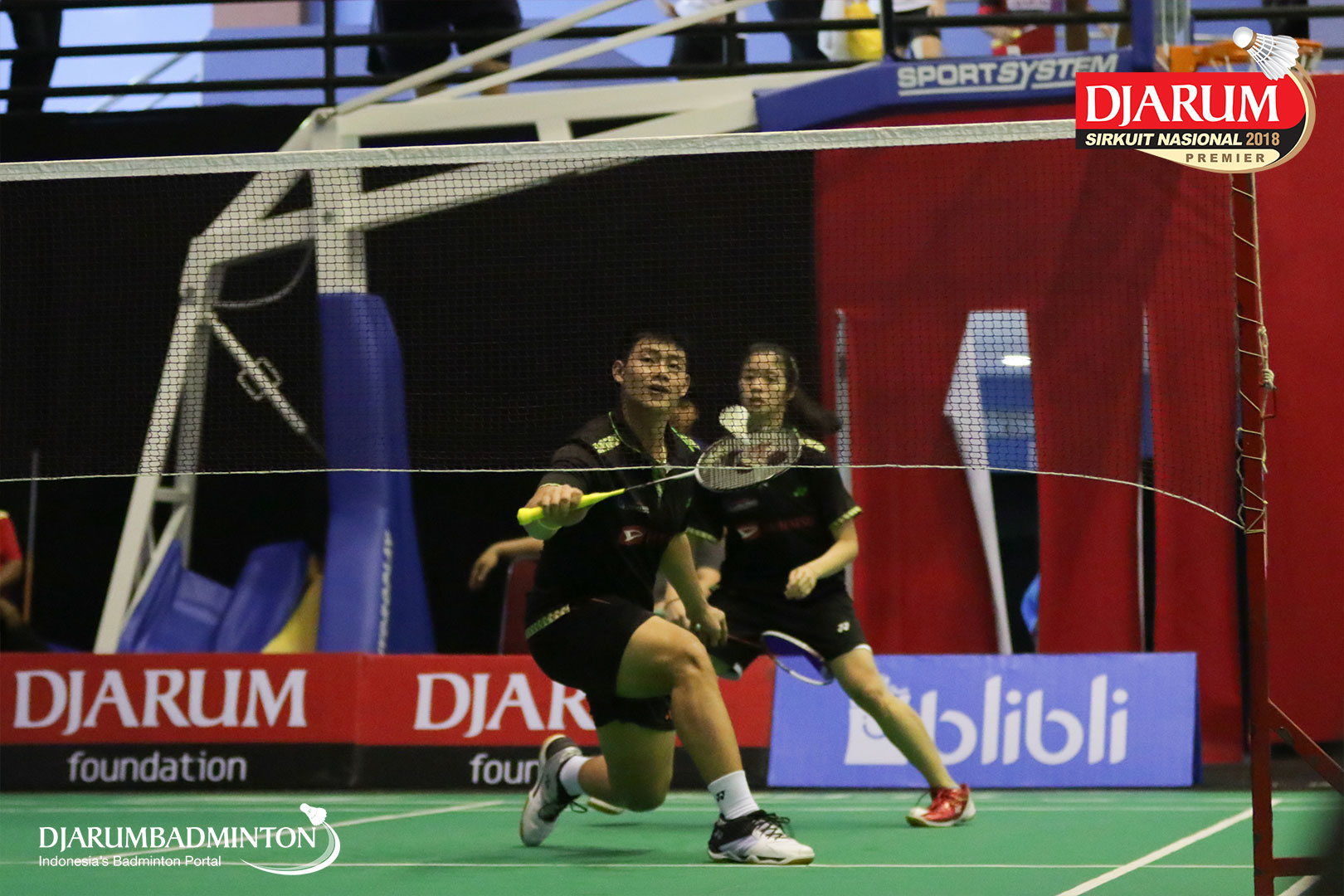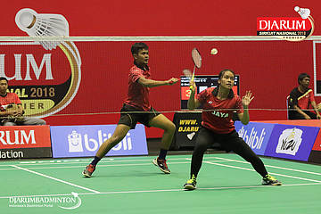 Muchammad Choirunnizar Chan dan Denisa Dwi Syawaliah Budiani (Jaya Raya Jakarta, Jakpus) bersiap menyambar pengembalian