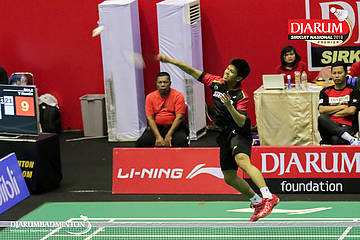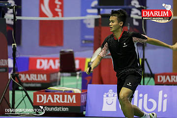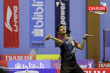 Aldy Firmanda (PB Djarum, Kudus) menyambar pengembalian