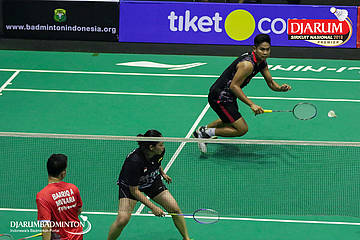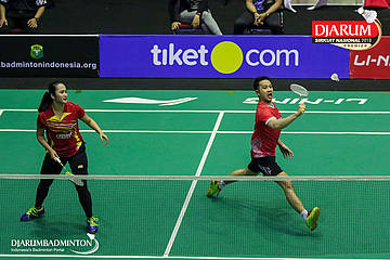 Crisandy Santosa/Melani Mamahit (Exist, Jakarta) gagal mengembalikan serangan