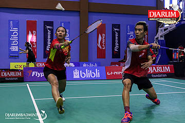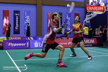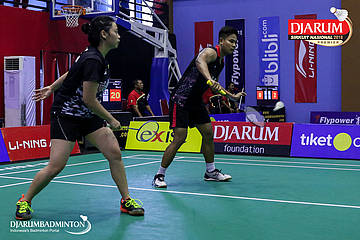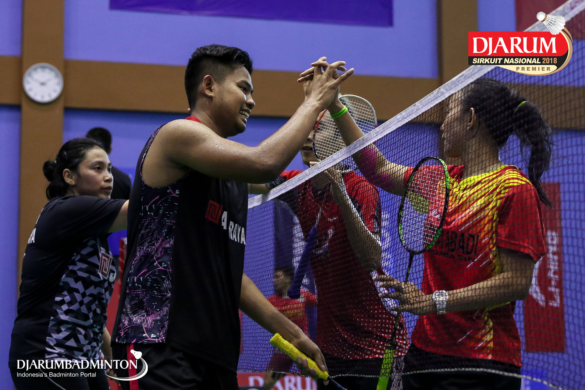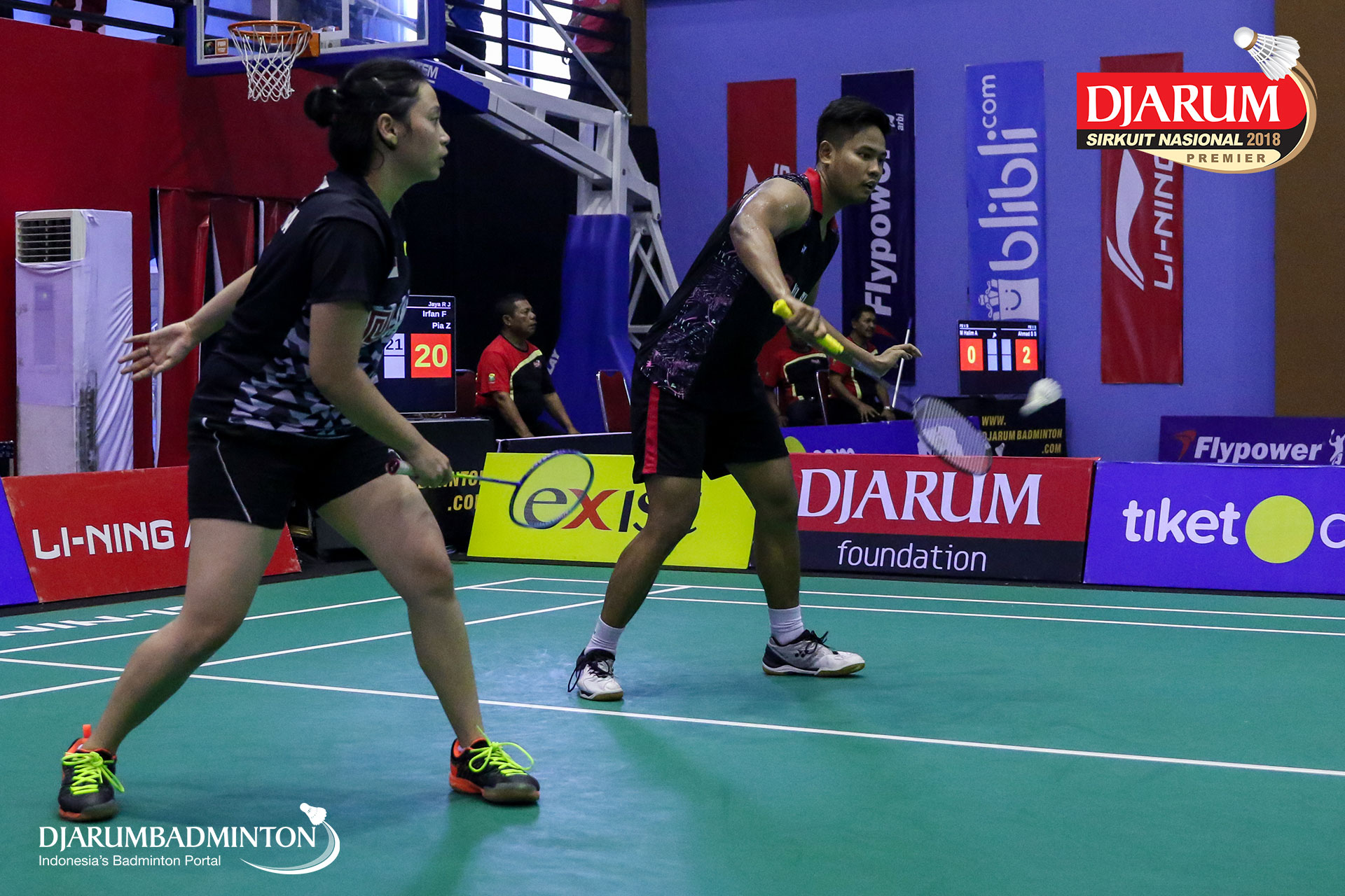 Irfan Fadhillah/Pia Zebadiahbernadet (Jaya Raya Jakarta, Jakpus) menyambut pengembalian