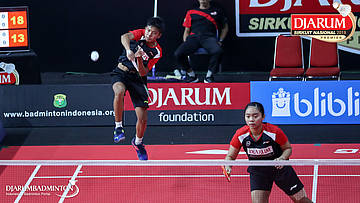 Rahmat Hidayat+Febi Setianingrum (PB Djarum, Kudus) melepaskan serangan