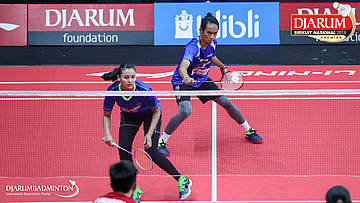 Agripina Primarahmanto Putera+Meirisa Cindy Sahputri (Berkat Abadi, Banjar) mengembalikan shuttlecock