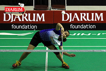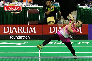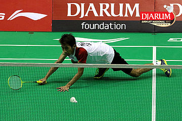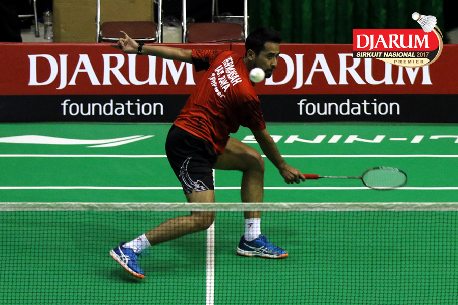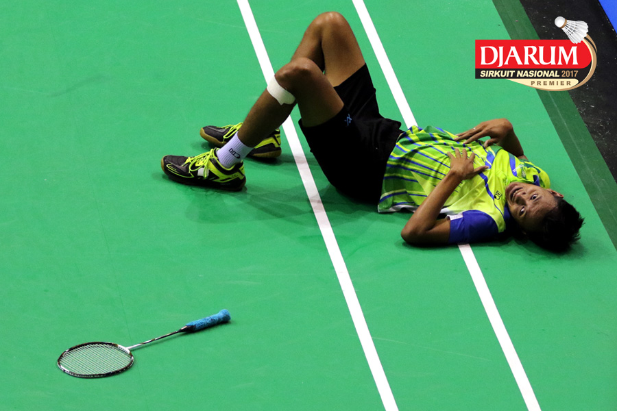 Wisnu Yuli (Djarum Kudus) Terjatuh Saat Menghadang Serangan