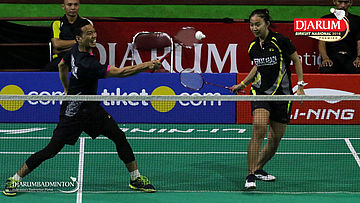 I Kadek Pande Dheva Brahmantya Putra/Sintia Dewi Yuliani (PB Djarum Kudus) Bersiap Menyambar Pengembalian