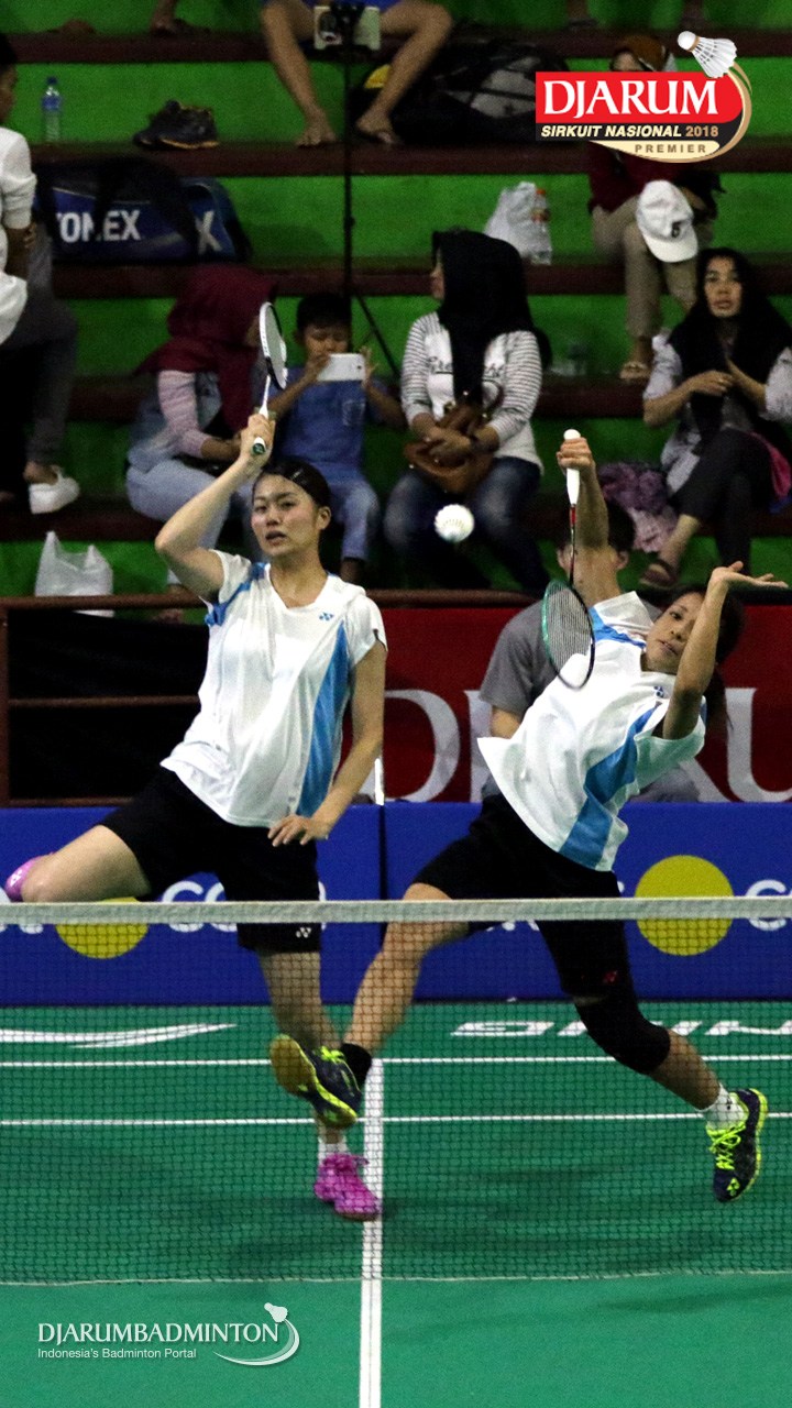 Denisa Dwi Syawaliah Budiani/Nahla Aufa Dhia Ulhaq (Jaya Raya Jakarta) Mengembalikan Shuttlecock