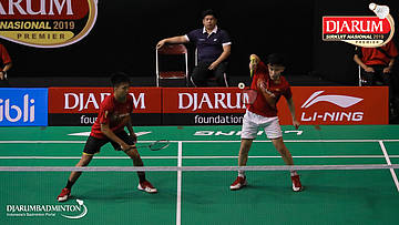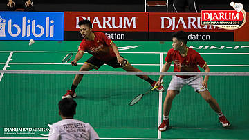 Fulgensius Nathaniel Gunawan+Muhammad Haidir Ali (Daihatsu Candra Wijaya) mengembalikan serangan