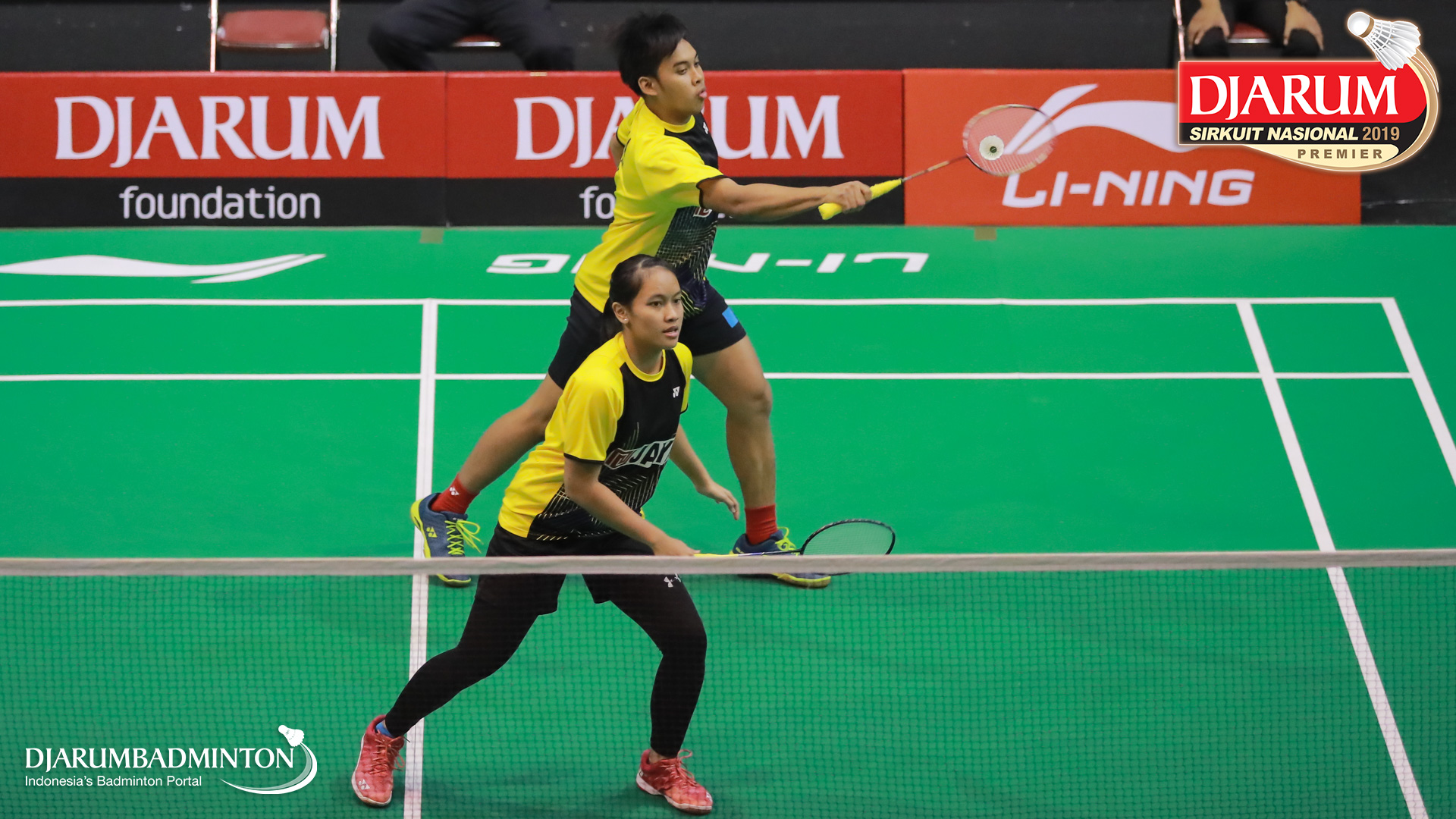Jaya Alfian Hudha+Denisa Dwi Syawaliah Budiani (Jaya Raya Jakarta) bersiap mengembalikan serangan