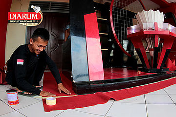 Seorang Pekerja Saat Mempersiapkan Perangkat Logistik Djarum Sirkuit Nasional Premier Li-Ning Jawa Tengah Open 2018 Di Booth Djarum Foundation