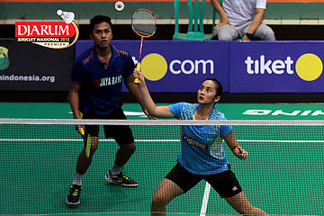 Irfan Fadhillah/Pia Zebadiah (Jaya Raya) Melepaskan Serangan