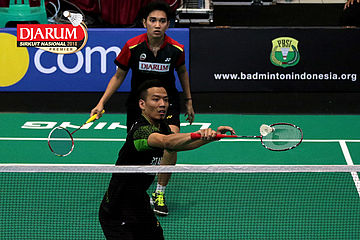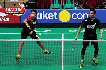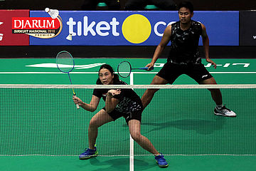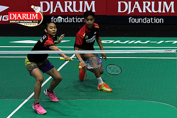 Rahmat Hidayat/Gity Gabriel Rambing (PB Djarum Kudus) Mengembalikan Shuttlecock