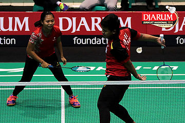 Lukhi Apri Nugroho/Ririn Amelia (Berkat Abadi/PB Djarum Kudus) Melepaskan Serangan