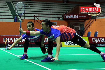 Melani Mamahit/Putri Larasati (Exist) Mengembalikan Shuttlecock