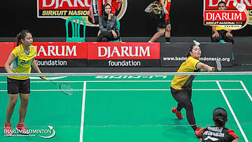 Amalia Cahaya Pratiwi+Metya Inayah Cindiani (Pelatnas PBSI) mengembalikan serangan