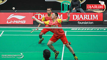 Gabriel Christopher Wintan Wijaya+Galuh Dwi Putra (Daihatsu Candra Wijaya) mengembalikan shuttlecock