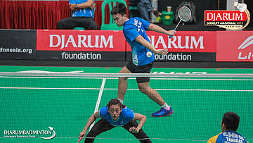 Reinard Dhanriano+Maretha Dea Giovani (Mutiara Cardinal, Bandung) berusaha melakukan pertahanan