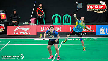 Berliona Alma Pradisa+Jovika Vandaria Ester Matiho (PB Djarum, Kudus) mengembalikan serangan