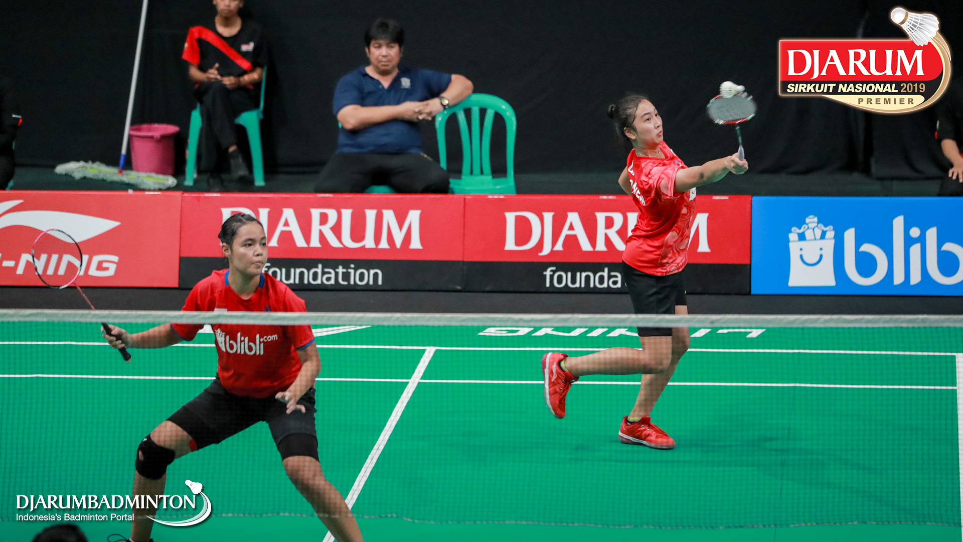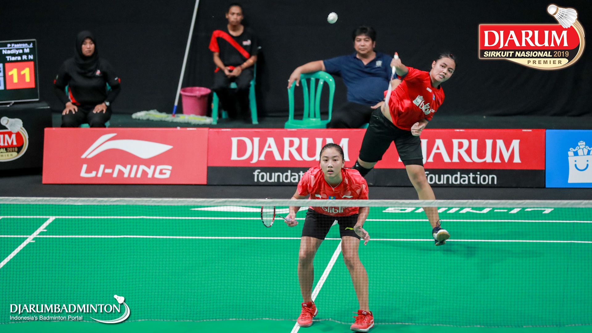 Nadiya Melati+Tiara Rosalia Nuraidah (Pertamina Fastron, Jakut+Mutiara Cardinal, Bandung) menyambar pengembalian