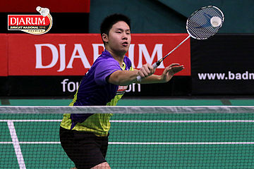 M. Lukman Hakim (Malaysia) Mengembalikan Shuttlecock.