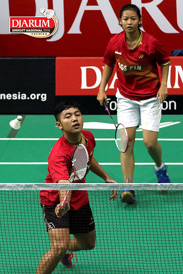 Trikusuma Wardhana/Suci Rizky (Exist/Mutiara Cardinal) Mengembalikan Shuttlecock.