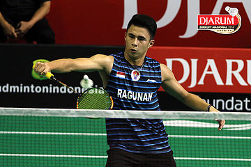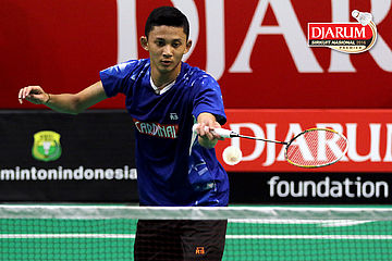 Dionysius Hayom Rumbaka (Djarum Kudus) Mengembalikan Shuttlecock.