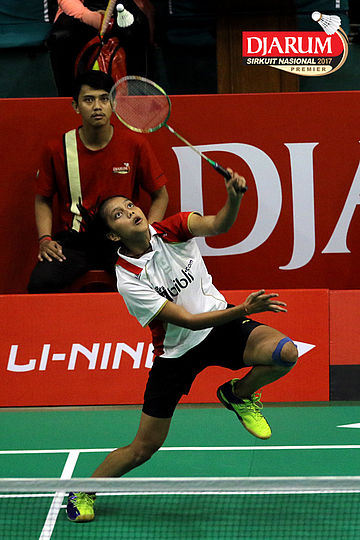 Melsya Nur Fitriani (Victory Bogor) Berusaha Menggapai Shuttlecock