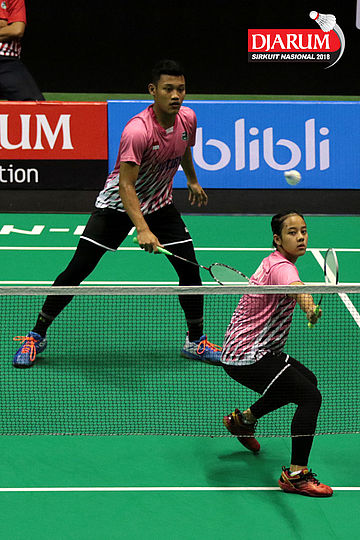 Asyhari Anhar/Inas Hasnaya (PB Victory Bogor) Mengembalikan Shuttlecock