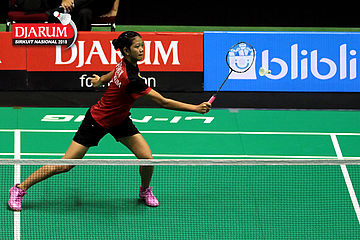 Nandini Putri Arumni (PB Djarum Kudus) Mengembalikan Shuttlecock