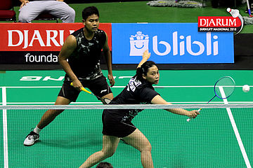 Rizko Asuro/Nadiya Melati (Pertamina Fastron) Mengembalikan Shuttlecock