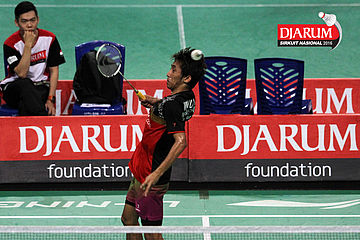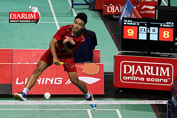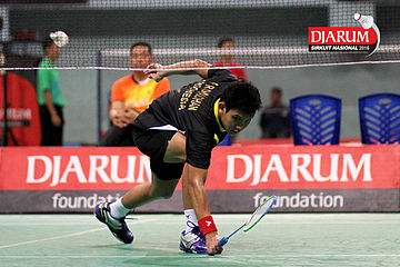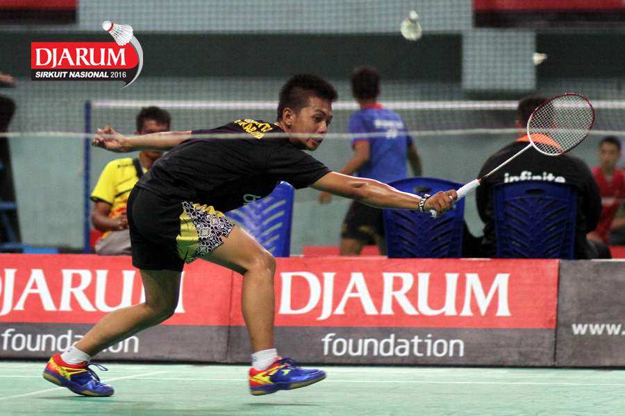 Wisnu Yuli (Djarum Kudus) menghadang serangan