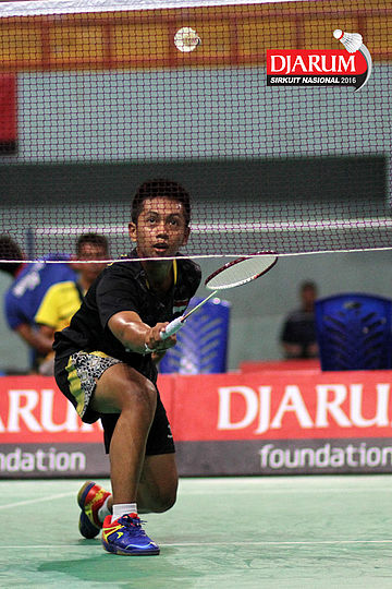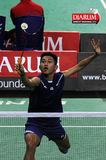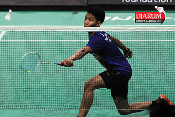 Fauzi Ramadhan (Exist) mengembalikan shuttlecock