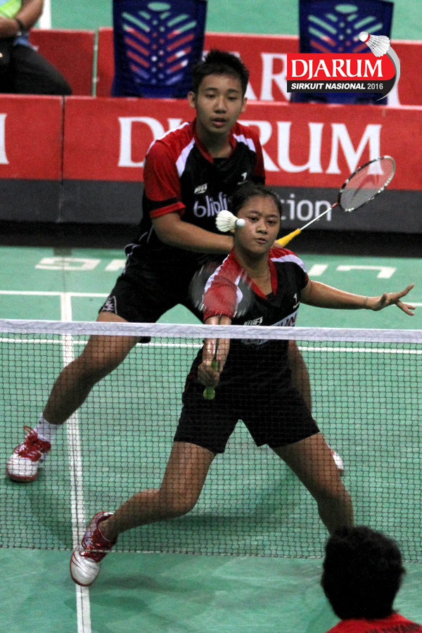 Amri Syahnawi/Marissa Vania (SKO Ragunan/Tangkas) menyambar pengembalian tanggung