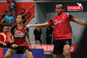 Pramudya Kusumawardana/Lisa Ayu (Djarum Kudus) menyambut pengembalian