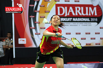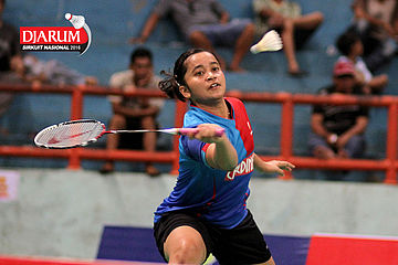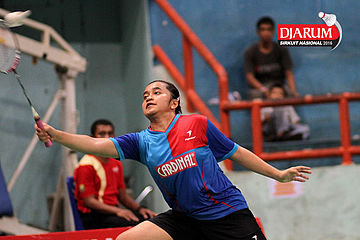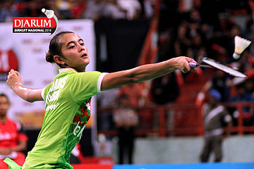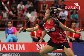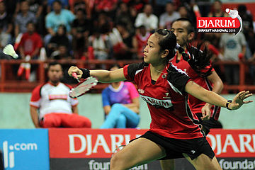 Silvi Wulandari (Djarum Kudus) mengembalikan shuttlecock