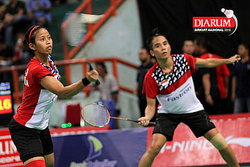 Dian Fitriani/Nadya Melati (Pertamina Fastron) menghadang serangan