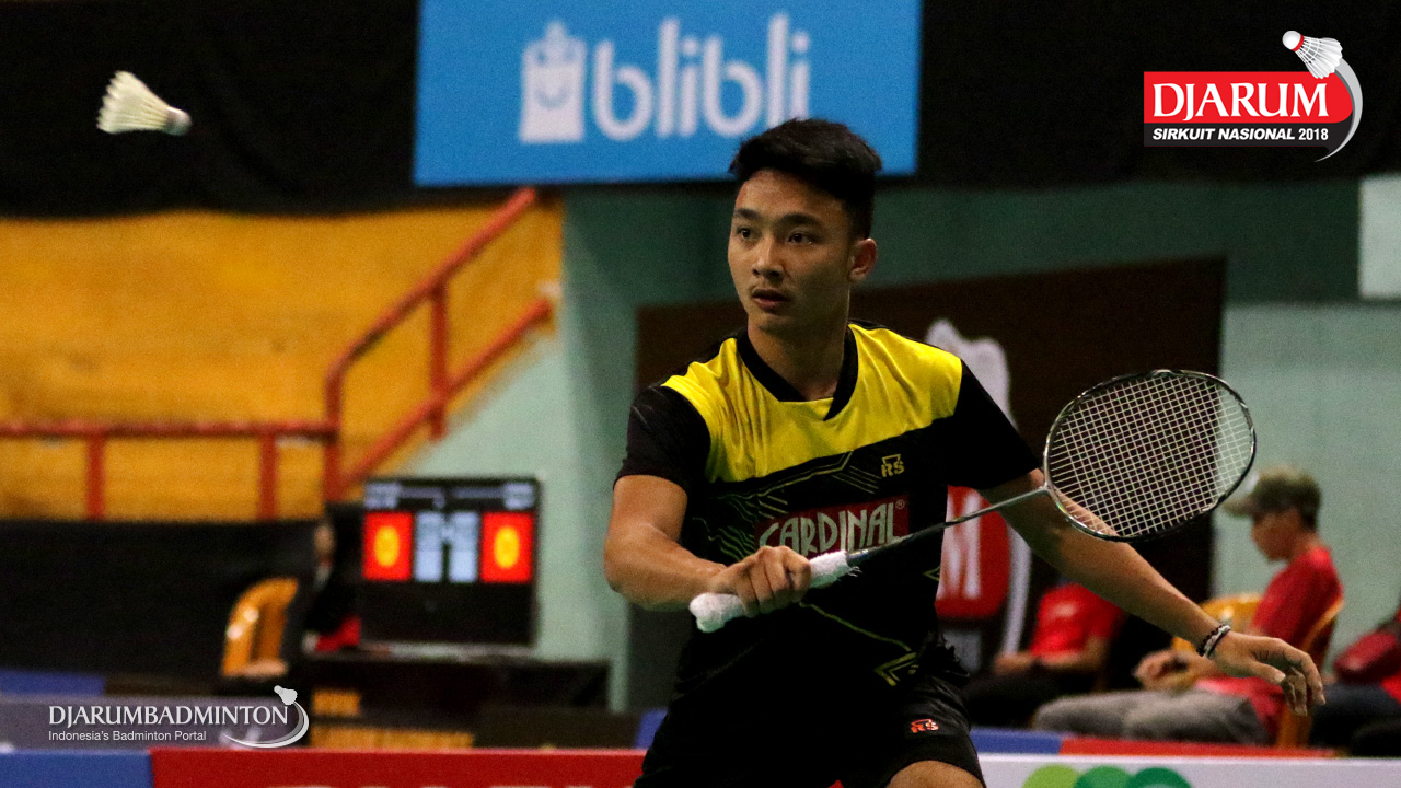 Mochamad Rehan Diaz (Mutiara Cardinal) mengembalikan shuttlecock