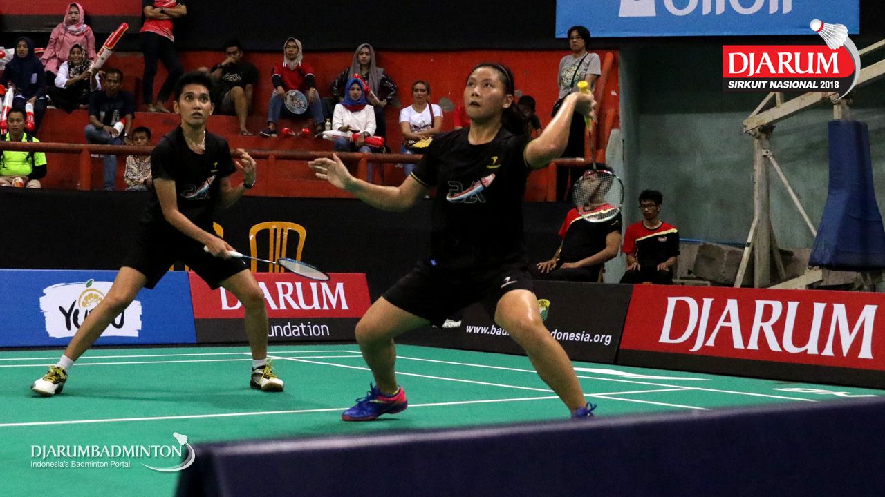Dian Fitriani/Nadiya Melati (Pertamina Fastron) bersiap menyambar pengembalian