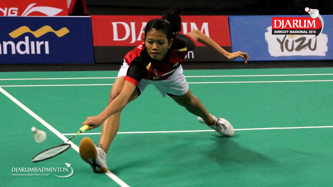 Nandini Putri Arumni (PB Djarum Kudus) mengembalikan shuttlecock